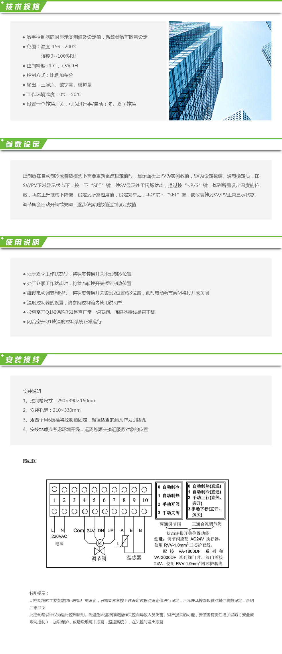 HL-KZ1201系列溫度控制箱內(nèi)配裝CH402系列鋰化表控制器,用于水管道或風(fēng)系統(tǒng)的控制。通過對檢測參數(shù)與箱內(nèi)控制器上用戶設(shè)定的參數(shù)相比較、判斷,來控制電動調(diào)節(jié)閥,達(dá)到水溫式室溫的自動調(diào)節(jié)。