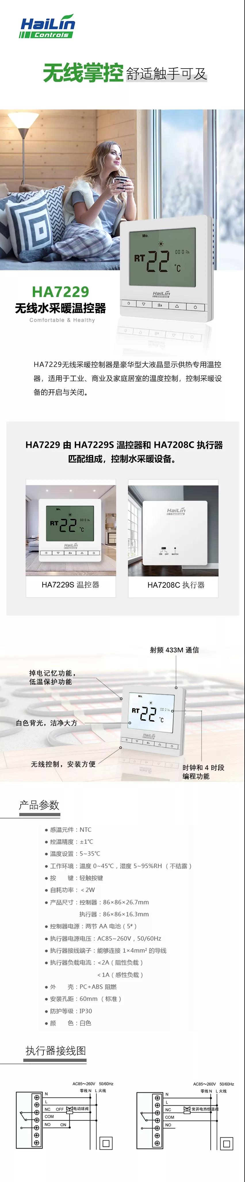 HA7229無(wú)線采暖控制器是豪華型大液晶顯示供熱專用溫控器,適用于工業(yè)、商業(yè)及家庭居室的溫度控制,控制采暖設(shè)備的開(kāi)啟與關(guān)閉。