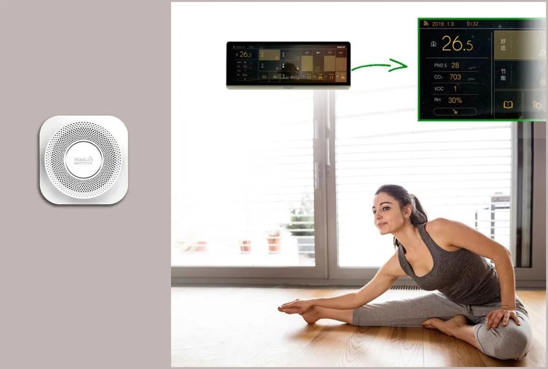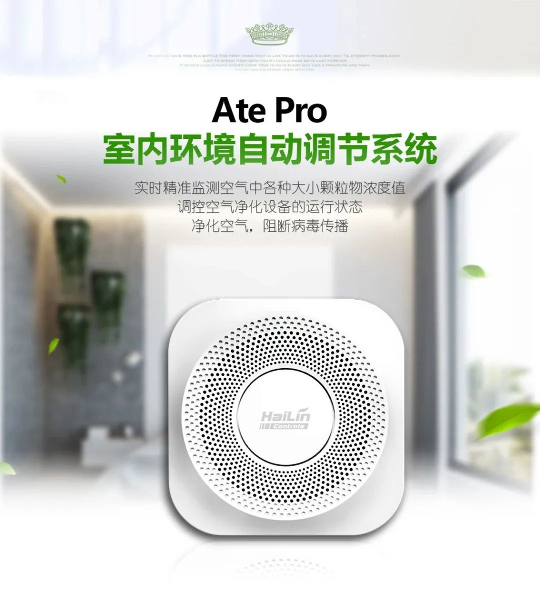 Ate Pro與Ace智能控制面板連接,Ate Pro實時監(jiān)測環(huán)境參數(shù),Ace智能控制面板根據(jù)數(shù)據(jù)精準調(diào)控新風凈化設備運行,保證室內(nèi)環(huán)境健康。同時系統(tǒng)將采集到的環(huán)境數(shù)據(jù)及設備運行狀態(tài)實時顯示在智能面板上,使用戶對當前室內(nèi)環(huán)境健康一目了然。