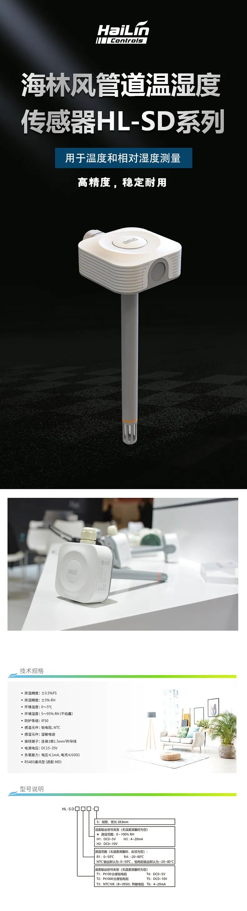 海林風(fēng)管道溫濕度傳感器HL-SD