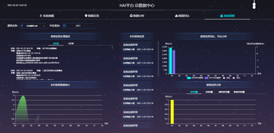 系統能夠基于AIoT技術的知識庫自動識別能源管理機會,指導運行管理,實現對校園內能耗設備的最優化利用;能夠對可能出現的異常情況進行提前預警提示,將故障報警信息及時的發送給相應的管理人員,第一時間解決故障問題;