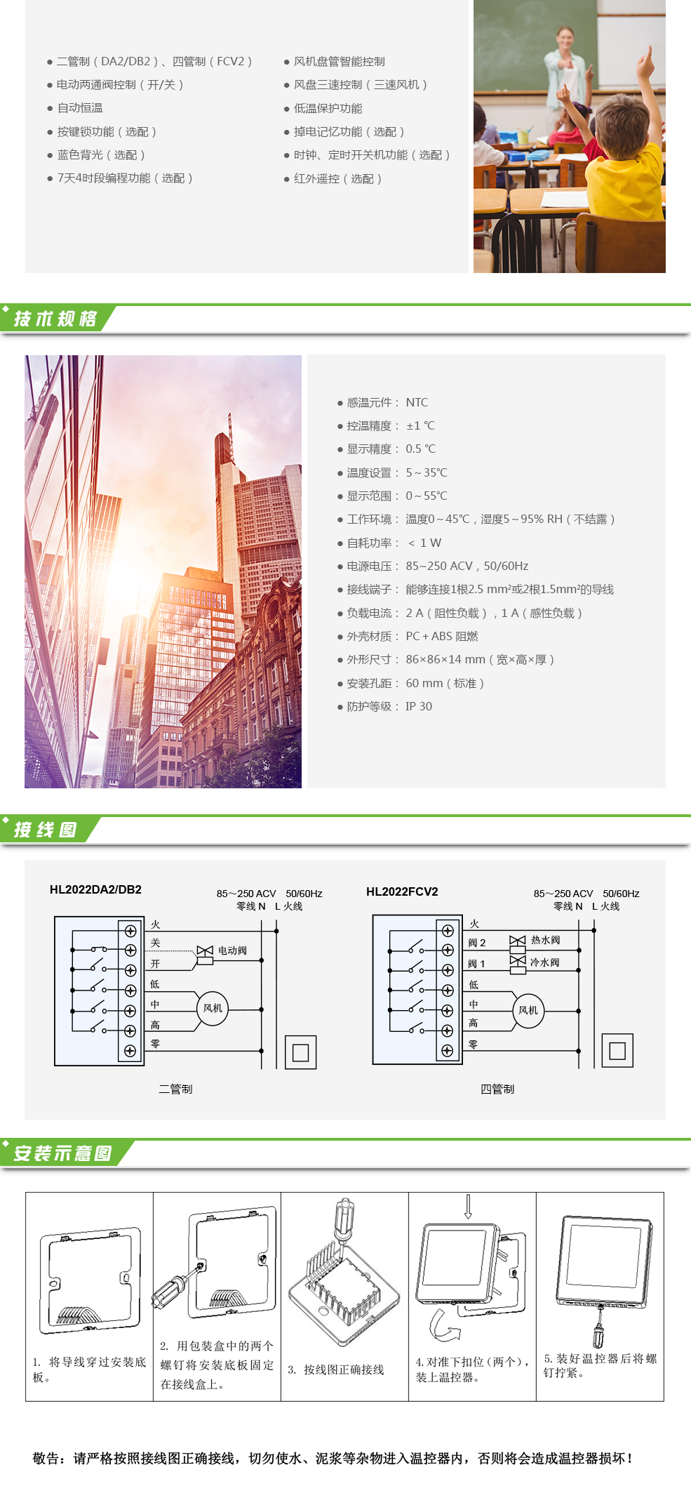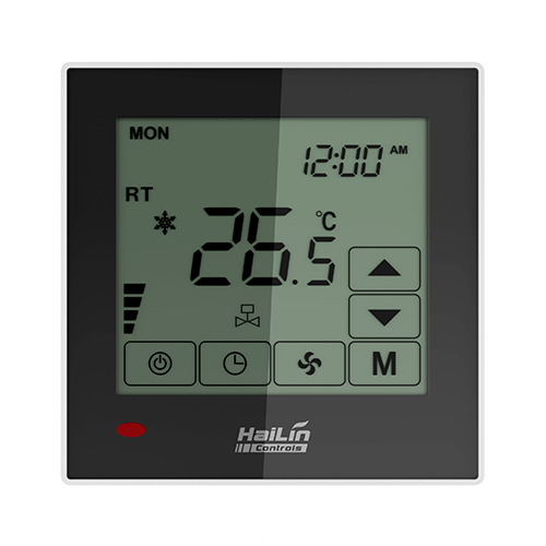 觸摸屏溫控器HL2022適用于中央空調(diào)風(fēng)機(jī)盤管系統(tǒng)或風(fēng)管道系統(tǒng)的室內(nèi)溫度控制,通過(guò)室內(nèi)溫度和設(shè)定溫度相比較,對(duì)空調(diào)系統(tǒng)末端的風(fēng)機(jī)盤管、電動(dòng)閥或電動(dòng)球閥進(jìn)行開啟和關(guān)閉控制,達(dá)到調(diào)節(jié)室內(nèi)溫度、舒適及節(jié)能的目的。