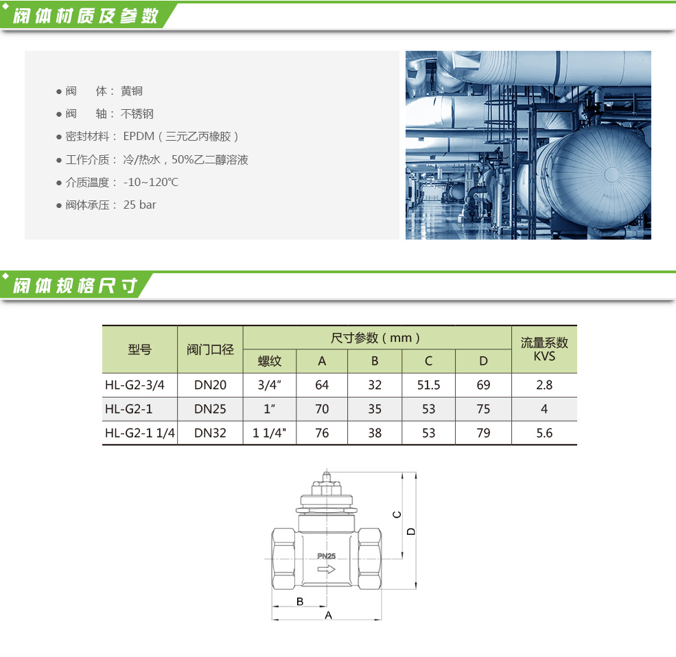 風機盤管二通閥用于中央空調系統、采暖系統,根據配合的執行器不同,分為電動型二通閥和電熱型二通閥。閥體為常閉狀態,執行器接收溫控器的開閥信號后將閥門開啟,冷水或熱水進入風機盤管,為房間提供冷氣或暖氣。閥門關閉壓差可達2.5公斤。