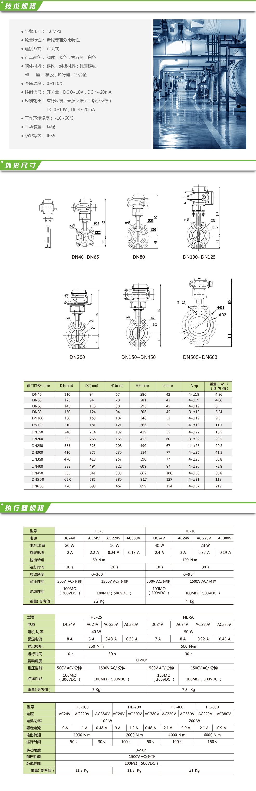 HL-D系列電動蝶閥是由角行程電動執行器和蝶形閥體組成的控制閥。主要適用于空調、制冷、采暖等樓宇自動控制系統,以滿足調節流量和截流介質的要求。90度回轉啟閉迅速調節性能好,蝸輪輸出軸一體化設計傳動精度高,啟閉力矩和流體阻力較小,控制信號與反饋信號有多種選擇。